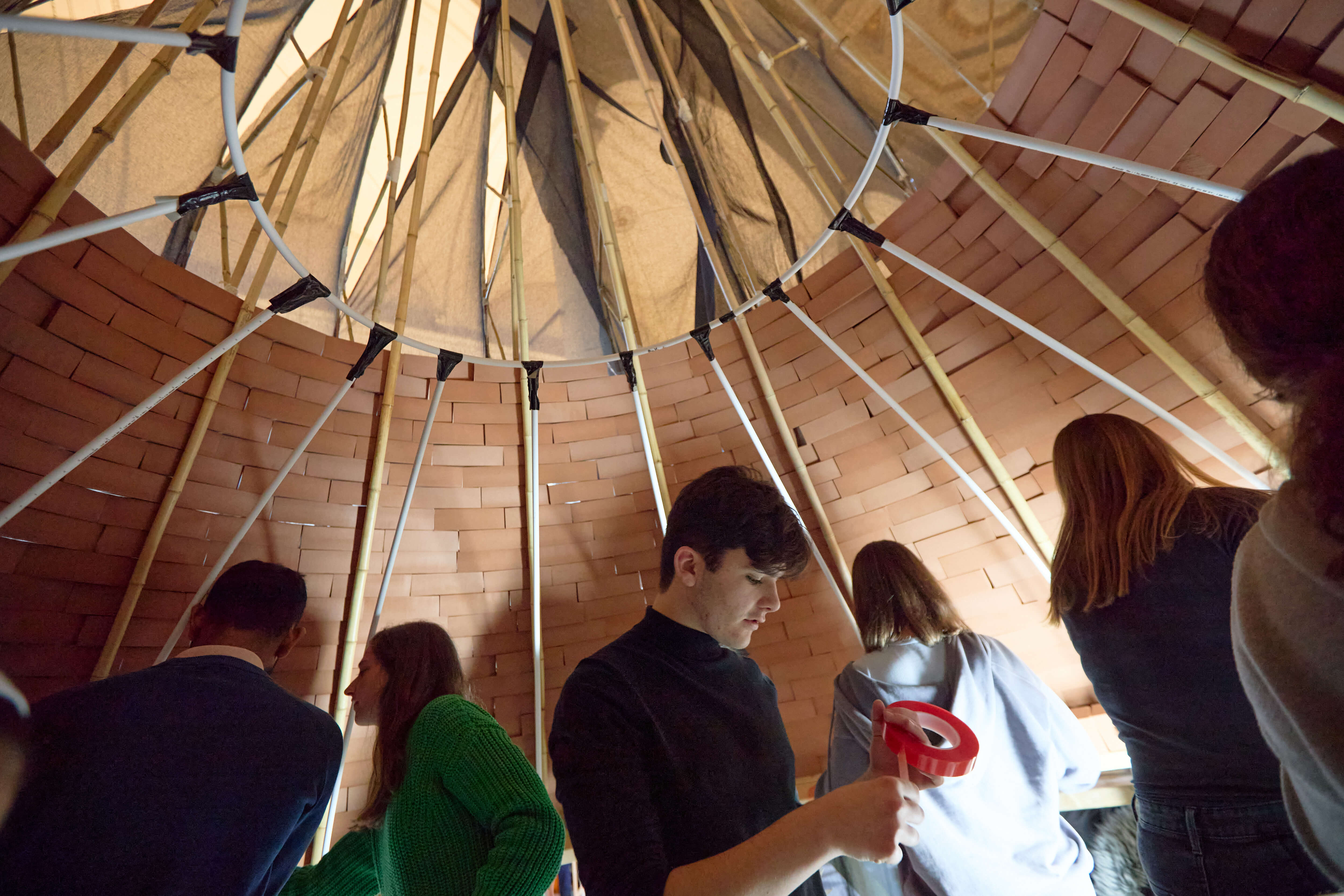“We’re using foam bricks with a bamboo framework. The wooden support structure round the base will be preconstructed and the bamboo cut to the correct lengths to be formed into trusses to create the outer Dome shape. The central cone which supports the lantern will be built with the foam bricks. The Dome’s covering will be sheets of lead coloured muslin cut into segments to fall over the bamboo structure. The Dome will be lit inside to create a magical effect. The lantern will be part preconstructed and one group of students will complete its construction during the day. Someone will be chosen for the task of placing the lantern in position at the end of the day!”